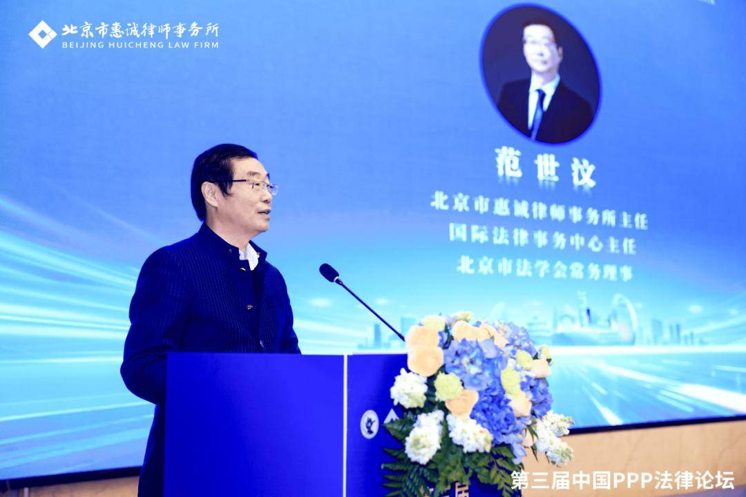 北京市惠诚律师事务所范世汶主任在代表承办方致辞时,首先感谢各位嘉宾拨冗莅临,并诚挚感谢主办方中央财经大学财政税务学院的信任,以及樊勇院长与安秀梅教授对论坛筹办的大力支持。他强调,PPP法律业务始终是惠诚律所的一块“金字招牌”,律所将一如既往地秉持专业精神,在PPP规范发展的进程中持续贡献“惠诚智慧”与“惠诚力量”。
