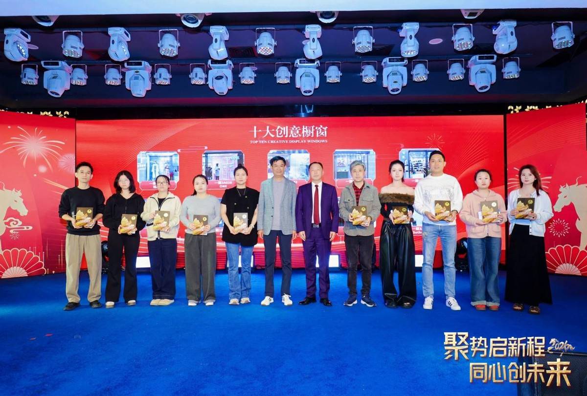 广东省商品交易市场协会执行副会长兼秘书长刘中伟、广东省皮具商会秘书长、广州羿丰置业有限公司副总经理方升来颁奖颁发2025年度“十大创意橱窗”奖项