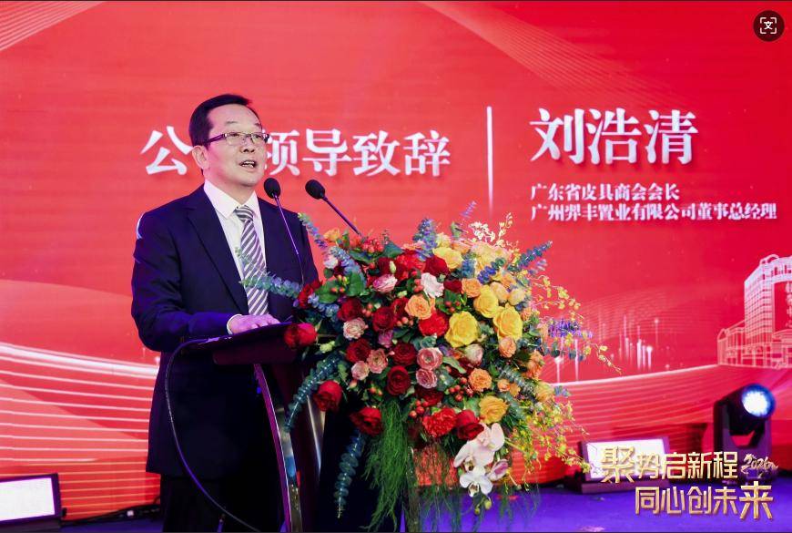 广东省皮具商会会长、广州羿丰置业有限公司董事总经理刘浩清在致辞中表示商会始终秉承“团结互助、共谋发展”的宗旨,积极发挥桥梁纽带作用,促进了会员企业间的资源共享与优势互补。白云皮具城新的一年继续加大升级力度,不断完善配套设施、优化业态布局,不断强化打造高端、时尚、轻奢于一体的旅游购物平台,让白云皮具城成为广州市场转型升级的标杆与名片。